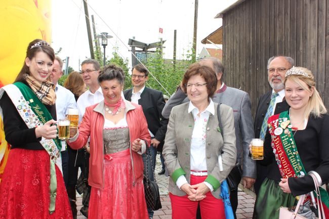 „Hopfen hat nur einen Nachteil, er ist nicht unmittelbar verkostbar. Deshalb braucht es Veredler, von denen man hervorragende Urprodukte, allen voran natürlich das bayerische Bier, erwarten kann“, mit diesen Worten begrüßte Pfaffenhofens Landrat Martin Wolf die versammelte Runde am Griesplatz zur Eröffnung des großen Wander- und Radltages entlang des genussreichen Erlebnispfades „Hopfen & Bier“. Der Hopfenland Hallertau Tourismus e.V., der auch in diesem Jahr den Familienerlebnistag zusammen mit zahlreichen ehrenamtlichen Helfern organisierte, erwartete mit der Stadt Mainburg zahlreiche Kommunalpolitiker und Vertreter der vier Hallertauer Landkreise.