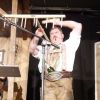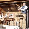 Multiinstrumentalist passt auf jeden von den Dreien, einprägende und überzeugende Solos auf praktisch jeden Gegenstand, dem man einen Ton entlocken kann, sorgten für freudig erstaunte Gesichter und satten Zwischenapplaus. Daniel Neuner´s Stimme und seine verschmitzte gewinnende Art sind für den Gesang zuständig, an der Tuba, der Geige, der Hackelsteckenflöte oder ganz pur nur mit den Händen, spielt sich der Herr Lehrer Juri Rex in die Herzen der Zu- Hörer sprich Schauer. Tonangebebender Knopf an der Ziach und einziger Weltmeister (der diatonischen Harmonika von 1996) ist jedoch Toni Bartl. Den Terence Hill Blick, immer mit leicht schiefen Kopf ins Publikum gerichtet, lässt selbst den härtesten Muhhackel dahinschmelzen.