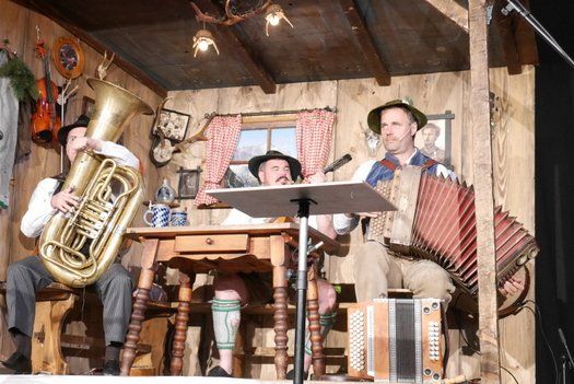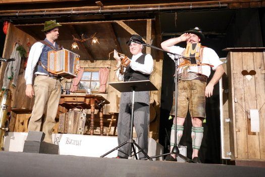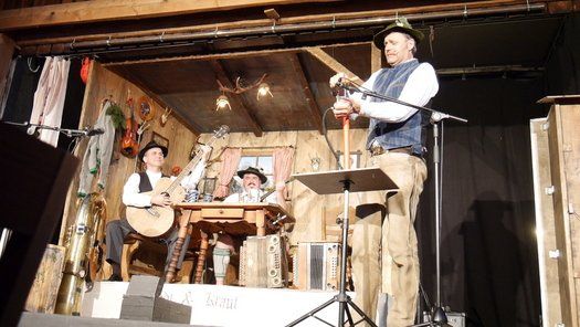 Toni Bartl „Hannesla“ aus Partenkirchen, der kreative Kopf des Programms, hat seine Musikerspezln, Daniel Neuner, „Schnitzer“ aus Garmisch und Juri Lex einer der besten Musiker Bayerns und ehemaliger Gymnasial- und Waldorfflehrer, mitgebracht. Jeder für sich ist schon ein musikalisches Gesamtkunstwerk, aber als Trio ziehen sie praktisch alle Register. Im gut besuchten Stockerstadel, fanden sich eingefleischte Fans der ersten Stunde in angesagter Tracht, aber auch neugierige Pfaffenhofener.