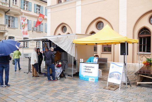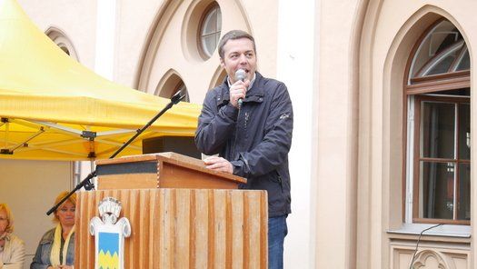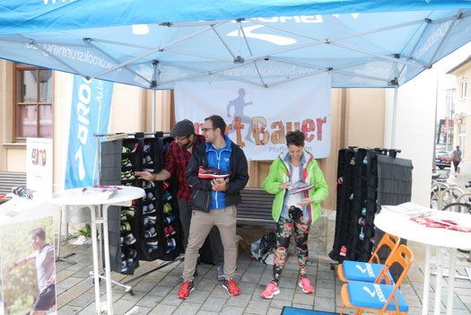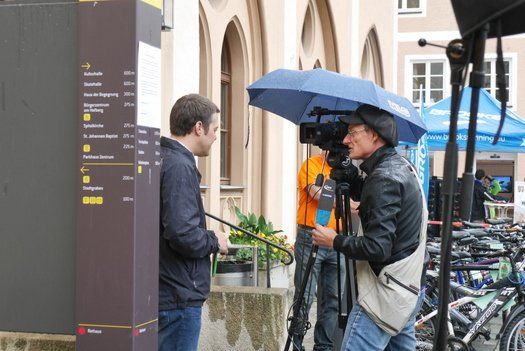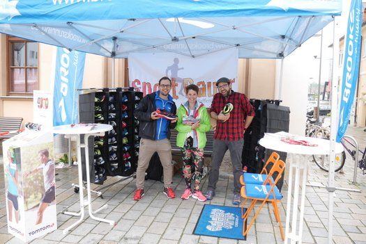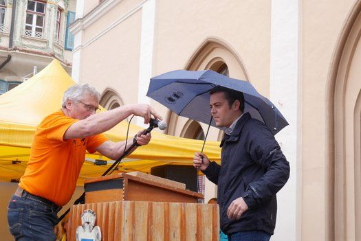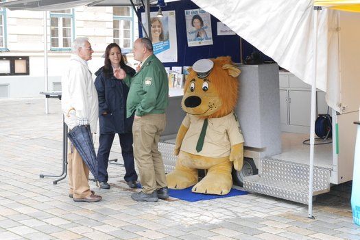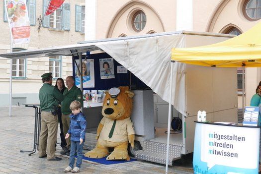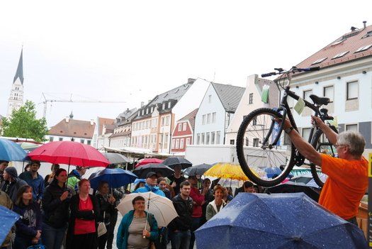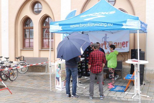 Bei diesem Satz wurde natürlich die örtliche Polizeiführung, die nebenan einen Informationsstand mit lebensgroßem Löwen-Maskottchen betrieb, sofort hellhörig. Auf der anderen Seite des Rathauses hatte sich zum Aktionstag "Sommer in der Stadt" Sport Bauer platziert. Ihr alternatives Laufschuhangebot, sollte man kein Rad finden oder von der Polizei verfolgt werden, fand reges Interesse.