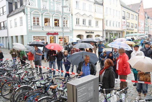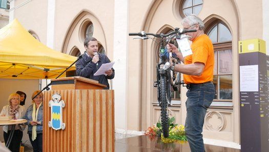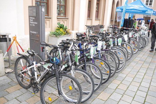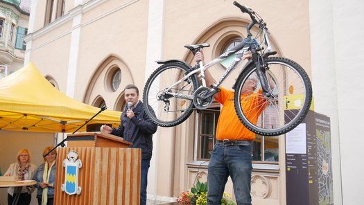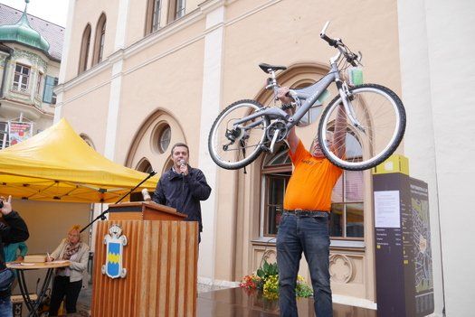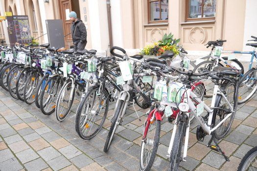 Die Versteigerung wurde im Rahmen der Aktion "Stadtradeln" durchgeführt, an der sich vom 4. bis 24. Juni alle interessierten Radlerinnen und Radler beteiligen können. Insgesamt kamen bei der von Bürgermeister Thomas Herker geleiteten Versteigerung am Ende 818 Euro für 26 Räder zusammen.