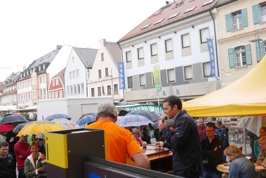 Zwei Hochzeiten mit entsprechendem Aufgebot mischten sich auch noch unter die illustre Schirmträgermenge vor dem altehrwürdigen Rathaus. Ein Wochenmarktsamstag bei Regen, das heißt in Pfaffenhofen nicht, dass es langweilig wird. Der geneigte Kreisstädter ist wasserfest und der Samstagvormittag hat seinen festen Platz in der Wochenplanung. Das umfangreiche Angebot der Wochenmarktbeschicker kann sich aber auch sehen lassen und gegen den Regen gibt es Schirme. Ebenso haben die diversen Straßencafés und Wirtschaften trockene Sitzplätze, das Wochenende ist gerettet.