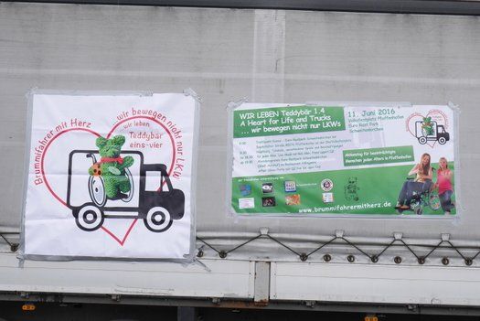 Mehr über die Brummifahrer mit Herz, die sich nach ihrer Abschluss-Veranstaltung mit Tanz beim Hillinger in Schweitenkirchen wieder ihrer Arbeit auf Rädern widmen werden, finden Sie auf oben genannter Web-Seite. Die Liste der Sponsoren ist ellenlang und sie erkennen die Fahrer an dem Transparent oder dem Schild „Brummifahrer mit Herz“