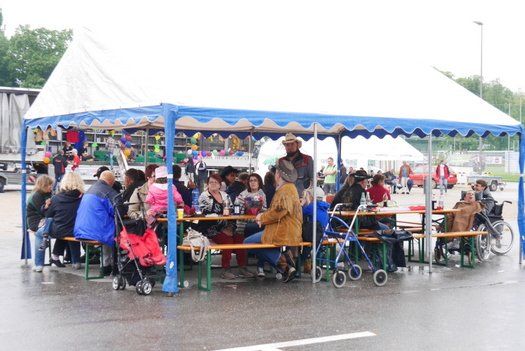 Neben einer Bühne mit Live-Musik, natürlich Country, waren offene LKW mit verschiedensten Aktivitätsangeboten postiert. Eine Gulaschkanone sorgte, neben den obligatorischen Hamburgern, für das leibliche Wohl. Eine Squaredancegruppe, „die Linedancer vom Hillingers“, zeigte ihr Können zur Musik (Franz Lippert, Rick Allen) und eine Tombola lockte mit Preisen.
