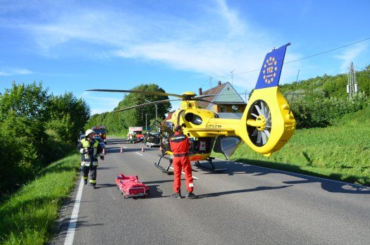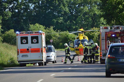 Am Pkw entstand ein Schaden in Höhe von etwa 1000 Euro, am Kraftrad wurde der Schaden von den Polizeibeamten auf etwa 2500 Euro beziffert. Der auf der Bundesstraße gelandete Rettungshubschrauber wurde glücklicherweise nicht benötigt.