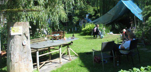 In der Idylle des alten Gartens, zwischen Gewölbe, Skultpuren und Teich lässt es sich trefflich philosophieren über Kunst und die Welt, über Pläne und Vergangenes. Man trifft alte Freunde, bekannte Gesichter und immer auch neue Gäste. Wer neu ist fühlt sich sofort heimisch, wer bekannt sich sowieso. Hier verschmelzen Kunst, Sommerfest und Gastfreundschaft zu einer absolut gelungenen Mischung.