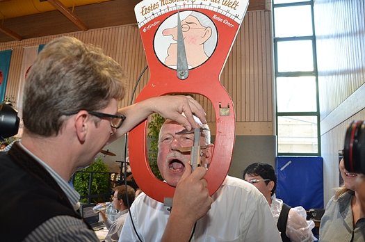 Dann traten, ohne dass dies gewertet wurde, neben Pfaffenhofens Landrat Martin Wolf (96,96 Millimeter) auch Reichertshofens Ortsoberhaupt Michael Franken (102,55 Millimeter), Ortpfarrer Michael Schwertfirm (101.04 Millimeter) und die zweimalige Nasen-Titelträgerin Margot Sikora (100,25 Millimeter) aus Ingolstadt an. Jene durfte allerdings nicht mehr mitmachen, denn einen dritten Auftritt sieht das Regelwerk der Nasen-WM nicht vor.