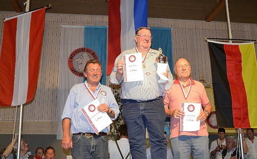 Die neuen Nasen-Weltmeister sind: Hans Roest aus den Niederlanden (verteidigte seinen Ersten Platz, Mitte), Zweiter wurde Hermann Machtinger aus Österreich und den dritter Platz nahm Anton Märkl aus Deutschland ein.