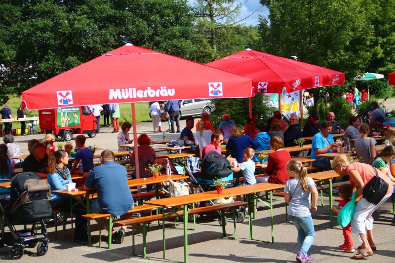 Zur Ilmtaler-Benefiz-Initiative, die die Veranstaltung geplant und durchgeführt hatte, gebe es nach den Worten ihrer Sprecherin Kathrin Hehme nicht viel zu sagen. Es seien 7 Leute aus Ilmmünster, die sich für das Fest zusammengeschlossen haben und in Zusammenarbeit mit den Vereinen das Programm gestalten. In der Tat waren viele Vereine mit abwechslungsreichen Mitmach-Aktionen vertreten: Tischtennis mit dem Aufschlagroboter beim SV Ilmmünster, Kränze flechten beim Gartenbauverein in Zusammenwirken mit dem Wald-Kindergarten, Schießen mit Holzgewehren beim Schützenverein. Und natürlich noch einmal der Sportverein in der Organisation des Spendenlaufs, zu dem es sich Bürgermeister Anton Steinberger nicht nehmen ließ, den Startschuss zu geben.
