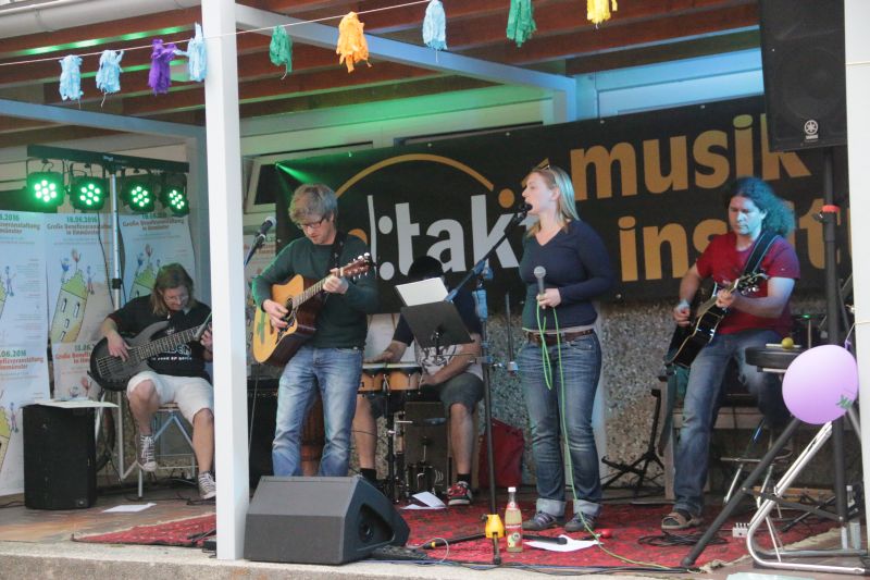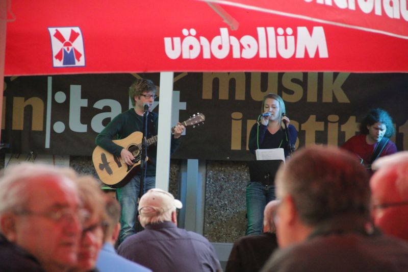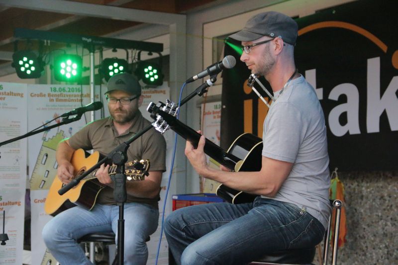 Als die letzten Läufer ihre Runden absolviert hatten - so manch eine(r) schaffte dabei 12 oder 13 Runden, das ist immerhin mehr als ein Halbmarathon! - begann der musikalische Teil im Unterhaltungsprogramm mit einer Gruppe von Volksmusikern, die bei nun herrlichstem Wetter den Biergarten einstimmten. Grigoli, das sind Georg Brandmeier und Oli Müller aus Ilmmünster, unterhielten in der Folge mit ihren akustischen Gitarren und Eigenkompositionen, besinnlich und ruhig vorgetragen, mit schönen, einfühlsamen Texten. Den Abend ausklingen ließen dann Hiox aus Pfaffenhofen mit Cover-Versionen aus Classic-Rock-Zeiten à la Eagles, Fleetwood Mac, Johnny Cash oder auch Janis Joplin.