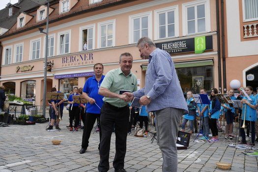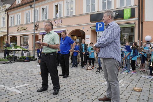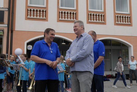 Das Wetter war gnädig und das zahlreiche Publikum applausbegabt und spendierfreudig, es passt also alles zusammen bei einem der letzten Auftritte von Musiklehrer und „Mutter“ aller Bläserklassen Elmar Schröck. Seit 2004 gibt es das erfolgreiche Projekt "Bläserklassen" an der Georg-Hipp-Realschule in Pfaffenhofen, ein Teil davon ist auch der rege Austausch mit dem österreichischen Pinkafeld, deren Gäste heuer schon zum vierten Mal in der Kreisstadt weilten.
