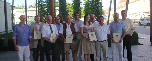 Für das langjährige Engagement bedankten sich Lorenz Reich und Christoph Pinzl beim Markt Altmannstein, der Marktgemeinde Au, dem Markt Nandlstadt, der Stadt Pfaffenhofen, den Markt Hohenwart und der Brauerei von Mortiz Fiege für 30 Jahre, bei der Hallertauer Hopfenveredelungs GMBH für 31 Jahre und beim Augsutiner-Bräu, der Hallertauer Volksbank, der HVG und dem Hopfenhandel von Johann Barth und Sohn für 32 Jahre.