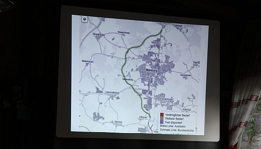 Im Raumordnungsverfahren werde zunächst Notwendigkeit der Trasse überprüft. In einem späteren Planungsfeststellungsverfahren besteht die Möglichkeit zur öffentlichen Beteiligung, z.B. durch eine Klage gegen die Planfeststellung, deren Kosten zu Lasten des Bauträgers fallen. Hier würden zunächst die Einwendungen der Bürger geprüft und abgewogen werden, so Schweiger. Auf die Frage, ob denn ein Bürgerbegehren etwas bringen würde, konnte ein erfahrener Jurist aus dem Plenum sofort mit „Nein“ antworten, da es sich um ein Bundesgesetz handle und private Einwendungen daher keinen Rechtscharakter besäßen.