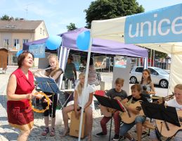 Auf dem samstäglichen Grünen Markt in Mainburg startete das UNICEF Team eine vielfältige Aktion, um die Mainburger auf die Arbeit von UNICEF aufmerksam zu machen. Kinder spielten unter der Leitung von Elisabeth Krojer "Straßenmusik", deren Mütter verkauften selbstgemachten Kuchen und Kaffee, zudem wurden Grußkarten zum Verkauf angeboten.