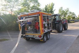 Knapp dreißig Jahre später rückte erneut die Feuerwehr aus – doch dieses Mal war es kein Brand sondern nur eine Übung. „In dieser Größenordnung sind sie eher selten“, erklärt der Kreisbrandinspektor. Gerade aber das Zusammenspiel der einzelnen Kräfte muss für den Ernstfall geübt werden. So war dann auch die Aufgabenstellung je nach Wehr eine andere. Während die Floriansjünger aus Gebrontshausen und Haushausen mit ihren Tragkraftspritzenanhängern vor Ort für die Wasserversorgung aus dem Postweiher und dem Larsbach zuständig waren, waren die Wolnzachern und Geroldshauser in der verrauchten Schreinerei auf der Suche nach vermissten Personen. Die Brandbekämpfung lag gemeinsam in den Händen der Feuerwehr Geisenfeld und Wolnzach. „Die Sicherung der umliegendenen Gebäude stand dabei im Fokus“, erklärt Einsatzleiter Georg Mirlach.