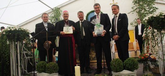 „Der Glaube ist für mich persönlich auch ein Quell der Kraft“, erklärte Bayerns Heimatminister Markus Söder. Der Franke war der Einladung gefolgt und kam wie viele Pilger zum Jubiläumsgottesdienst nach Lohwinden. Auch er war am Ende tief beeindruckt, nein bewegt von der Messe. Umrahmt von der Bläsergruppe um Papstpilot Martin Ott, konnte man von der ersten Sekunde an die ganz besondere Atmosphäre spüren. „Es gibt viele die Heilversprechungen machen, aber nur der christliche Glaube bietet den Menschen am Ende Halt“, so Söder weiter und sprach dabei auch von seinem ganz persönlichen Weg zurück zum Glauben. „Wir sind ein christlich geprägtes Land, in dem natürlich Werte wie Toleranz und Hilfsbereitschaft großgeschrieben werden, aber wir dürfen über dies die eigenen Werte und Traditionen nicht vergessen“, fügte der Minister an.