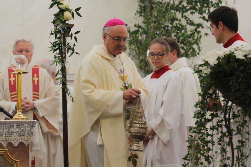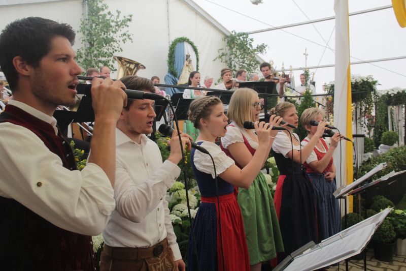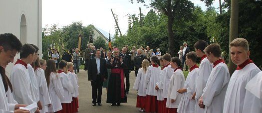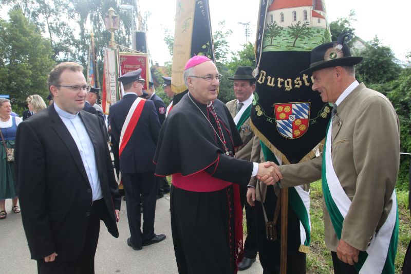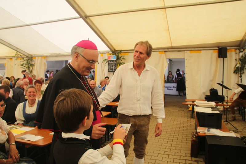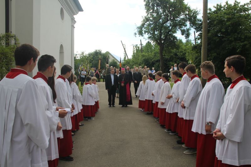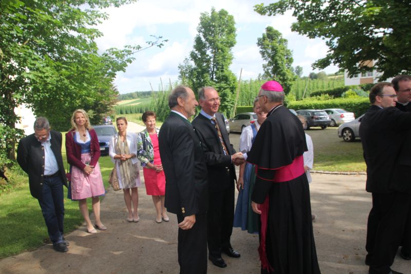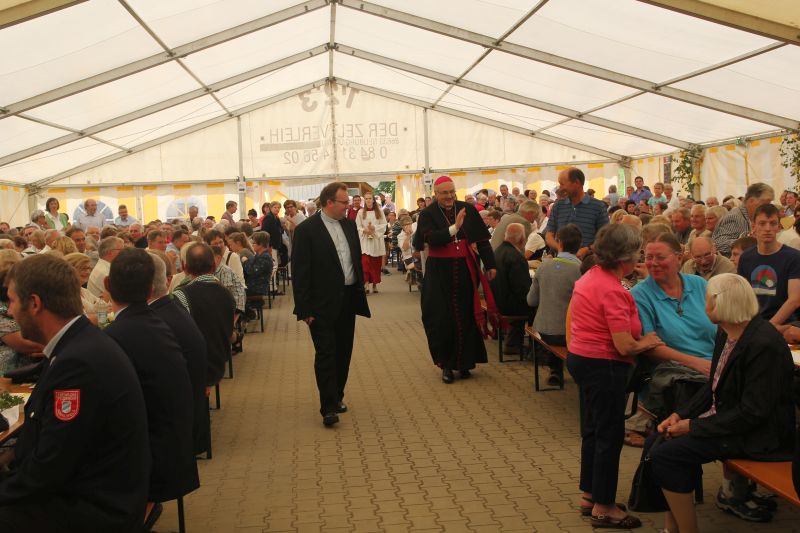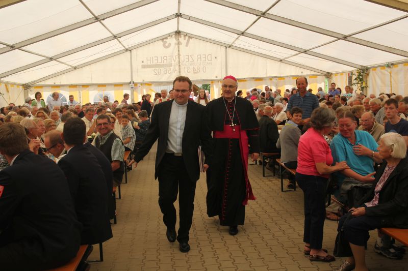 Etwas das man das ganze Jahr an den Wallfahrermessen in dem kleinen Gotteshaus sehen kann. Und so war es vielen auch ein Bedürfnis zu diesem Jubiläum nach Lohwinden zu pilgern. Von Wolnzach, Gosseltshausen aber auch von Rohrbach brachen die Gläubigen auf, um letztlich gemeinsam das zu feiern, was den christlichen Glauben so lebendig macht. „Die Kirche ist kein abgeschlossener Zirkel, sondern sie ist auch gerade ein Wegweiser für die Menschen“, erklärte Bischof Dr. Rudolf Voderholzer und verwies dabei auch auf die Bedeutung des christlichen Glaubens weltweit. Doch am Ende muss man den Blick gar nicht in die Ferne schweifen lassen, um zu erkennen, welche Stellung die Kirche innerhalb der Gesellschaft hat. Ein Blick nach Lohwinden genügt. Nicht nur hat man dort über viele Monate ein Jubiläum geplant und, wie auch der Bischof sagte, perfekt organisiert, sondern es kamen mehr als 800 Gläubige zu diesem Pontifikalamt. „Das ist ein starkes Zeichen, wie lebendig der Glaube heute immer noch ist“, so Voderholzer.