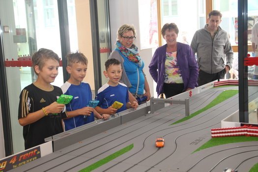 Doch Wolnzach wäre nicht Wolnzach, wenn man sich vom Regen aufhalten ließe. Obwohl die Rahmenbedingungen alles andere als perfekt waren, nutzen viele Kinder die Gelegenheit, einfach mal über die Preysingstraße zu skaten und hatten trotz des Regens Freude daran, die zahlreichen Attraktionen auszuprobieren. Ob im Geschicklichkeitsparcours, beim Bullenreiten, oder in der Hurrican-Box – der Spaß war den Kids von den Augen abzulesen. „Es freut uns natürlich wahnsinnig, dass trotz des eher schlechten Wetters so viele Kinder gekommen sind“, erklärte Anja Koch, die gemeinsam mit Marianne Hammerschmid die Organisation übernommen hatte. Ein besonderes Highlight an diesem regnerischen Tag: Die kleinen Gäste konnten gemeinsam mit Franz Westermair Wolnzachs dunklen Untergrund erkunden.