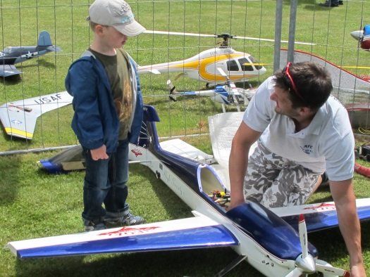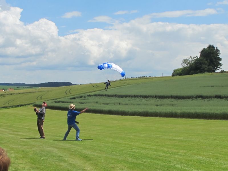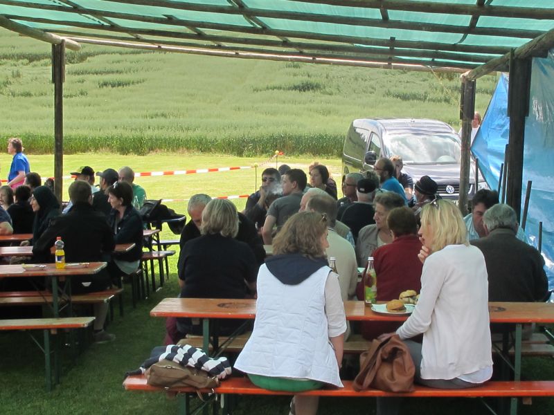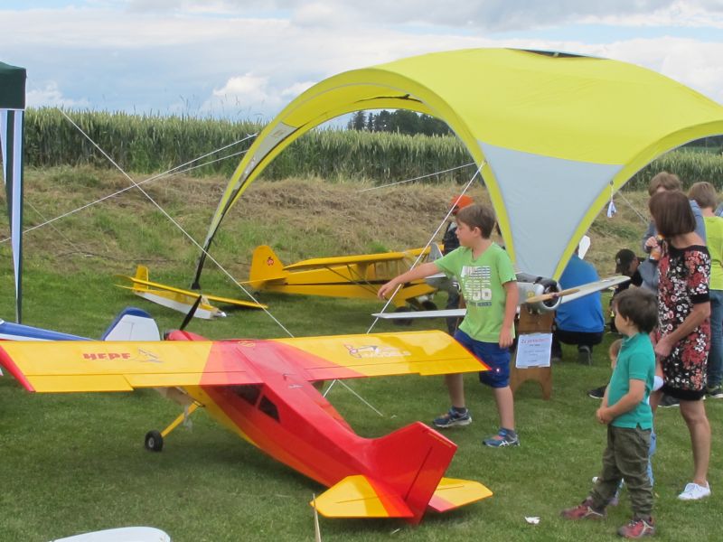 Die Attraktion bei den Kindern – der „Guatlbomber“. Als Philipp Kaindl mit seiner Maschine die Bonbons abgeworfen hatte, durften sie alle zusammen das Flugfeld stürmen. Für das leibliche Wohl war ebenfalls bestens gesorgt. Bei Steaks vom Grill und Salat, Kaffee und selbstgebackenen Kuchen ließ es sich neben der tollen Flugschau gut aushalten. Alles in allem wieder ein sehr gelungenes Modellflugfest.