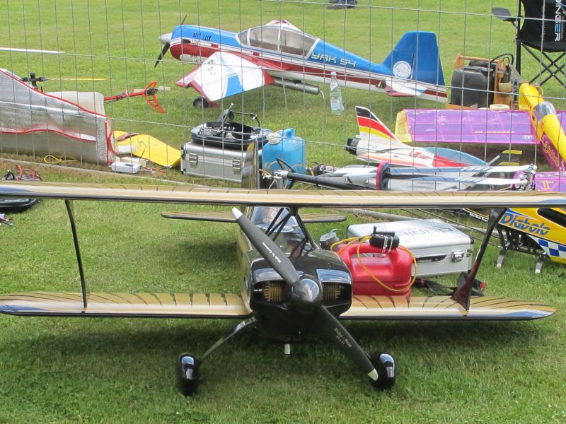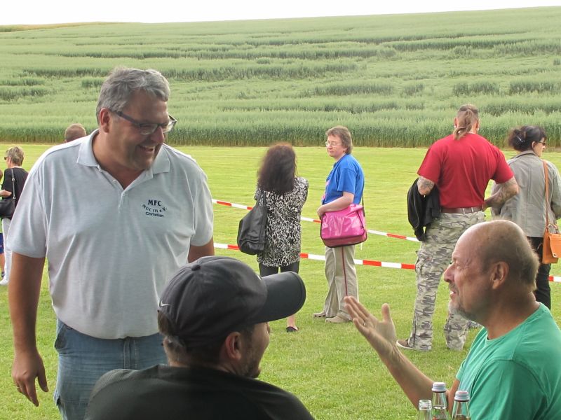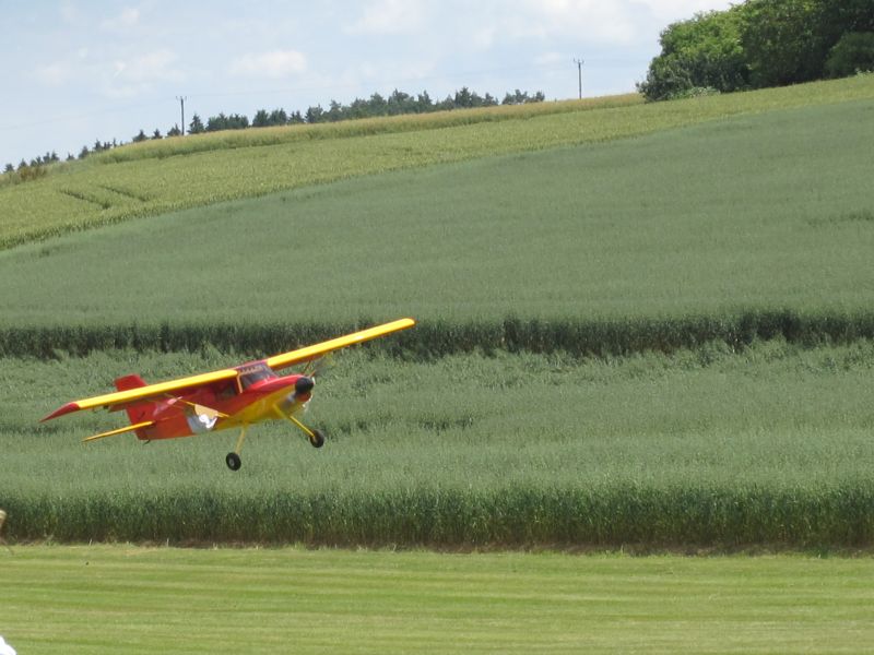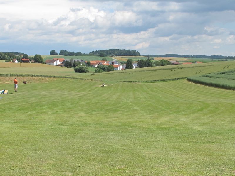 Fliegen voll am Limit. Die Gefahr ist immer da, dass man den Regler oder den Motor überlastet, aber das gehört einfach zum Sport dazu. In den umliegenden Feldern hatten die Modellflugzeuge zumindest eine weiche „Bruchlandung“. Die zeitweise starken Windböen waren zusätzlich für manches leichtere Modell grenzwertig. Trotzdem nahmen es die Piloten gelassen.