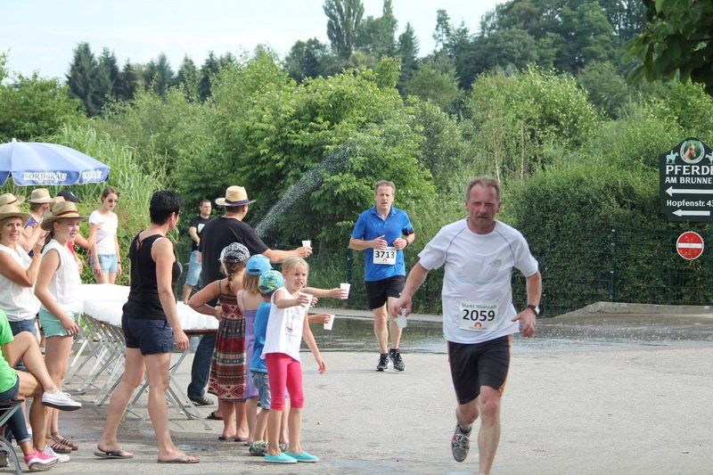 Läufer und Offizielle sind gleichermaßen begeistert. „Es ist toll, dass die zehn Kilometer heute klappen. Trotzdem wären wir vorbereitet gewesen“, so Matthias Keller-May vom BR. Im letzten Jahr scheiterten die vollen zehn an den fast vierzig Grad Außentemperatur. Man musste schnell umdisponieren und kam zu einer nicht ganz idealen Drei-Kilometer-Lösung. Bereits im vergangenen Jahr tat das der Teilnehmerzahl keinen Abbruch. Und auch heute sind satte 4.077 angemeldete Läufer und Walker durch die Region gejoggt und gewalkt. BR-Moderator Tom Meiler freute sich „riesig“, dass wieder so viele mitgelaufen sind und auch schon auf die Party danach – die der Markt Wolnzach grandios organisiert.