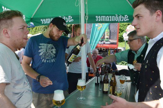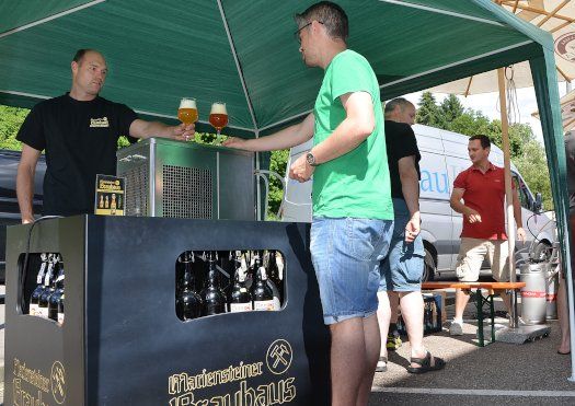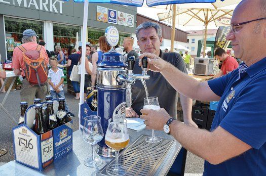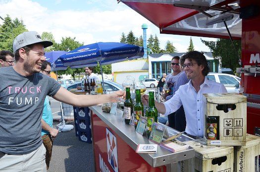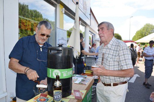 Hartmut Sulzberger, der Getränkemarkt-Chef, freute sich unbändig über die große Resonanz des zweiten Craftbier-Festivals. Noch bis 19 Uhr haben heute die Freunde köstlicher Biere die Gelegenheit zum Probieren. Den Getränkemarkt wird es allerdings nicht mehr lange geben. Am Rande der Veranstaltung sagte Sulzberger, dass er im September schließen werde. Aber nur für zwei Wochen der Umbauzeit. Dann gibt es nämlich an gleicher Stelle das „Sulzberger Bierhaus“. Und dann geht’s in Sachen des Gerstensaftes erst richtig zur Sache!