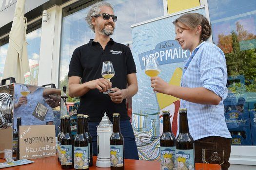 Und obendrauf gibt es von Liquid Hopf mit „Frau Gruber“ eine weitere Weltneuheit. Das Brauerduo Matthias Gruber und Enzo Frauenschuh - daher auch die Kombination für den Spitznamen des Bieres, das es nicht in Flaschen gibt – präsentiert seine neueste Kreation. Gruber ist übrigens auch, welch Zufall, der Hofname der in wenigen Wochen abdankenden Hopfenkönigin Anna, die nur lobende Worte für das Gebräu fand. Andere Bierfreunde haben ihr in ihrem Urteil heftig zugestimmt.