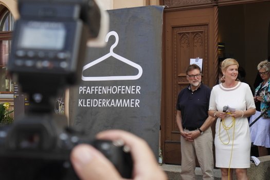 Landrat Martin Wolf persönlich hielt das prominente Grußwort und bedankte sich ausführlich beim Team der Initiative, für deren rechtzeitige und unkonventionelle Hilfe bei der Einkleidung der vielen Flüchtlinge, als es am notwendigsten war. Zwar unkten seine Parteikollegen noch über die von der SPD Pfaffenhofen organisierte Gebrauchtkleidersammlung, doch als Einrichtung, die sich zur mittlerweile festen Marke entwickelt hat, ist sie eine große Bereicherung für Pfaffenhofen. Gegen eine Schutzgebühr von einem Euro kann Jedermann und Frau dort einkaufen. „Wenn einmal der Landrat im gebrauchten Anzug im Amt erscheint, haben sie ihr Ziel erreicht!“