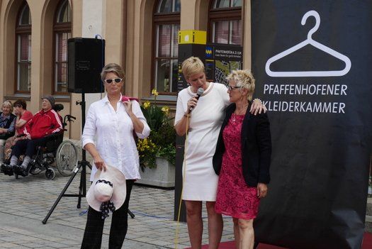 Na ja die ganz große Mode ist es noch nicht, aber eine Marke Made in Pfaffenhofen war da schon zu bewundern, am Samstagvormittag vor dem alten Rathaus. Roter Teppich, Kleiderbügellabel, aktuelle Musik und jede Menge „Modells“ die im gekonnten „WALK“ ausgesuchte Teile der Kleiderkammer Pfaffenhofen präsentierten.