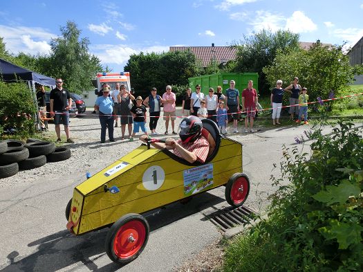 Am letzten Samstag fand in Attenkirchen am Sportgelände wieder das beliebte Seifenkistenrennen, organisiert von der Narhalla Attenkirchen, unter sengender Sonne aber bei bester Stimmung statt. 10 Fahrer hatten gemeldet, 9 kamen in die Wertung, daneben wurde auch noch das schönste Fahrzeug gekürt.
