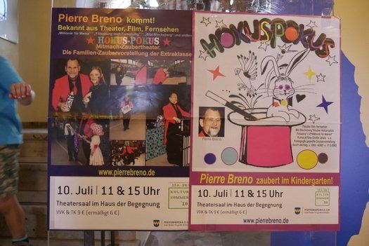 Mitgezaubert haben natürlich auch alle Erwachsenen, die Pierre Breno noch aus ihrer eigenen Kindheit kennen. Gezaubert wird natürlich mit Hut und Zauberstab, einzeln oder zu zweit auf der Bühne. Wer traut sich, wer wird Assistent und später vielleicht einmal selber ein großer Zauberer?