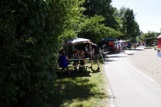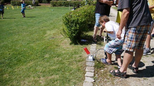 Der traditionelle Luftballonwettbewerb hatte noch das Meiste von der Hitze, Gas dehnt sich bekanntlich bei Wärme aus und die Ballons legten einen fulminanten Start hin. Die Spielstationen im Freien hatten trotzdem guten Zulauf, musste doch der Pass mit Stempeln gefüllt werden. Verkehrswacht, Polizei und der Stand des Schützenvereins Frohsinn Ilmmünster hatten mächtig Zulauf. Die Tombola war wie immer ein voller Erfolg und Eiscafé nebst Kuchen verkaufte sich praktisch von selbst. Die Steckerlfisch waren in einem Sitz weg, Brotzeiten und Getränke folgten, das Rebl -Fest ist für seine gute Küche bekannt.