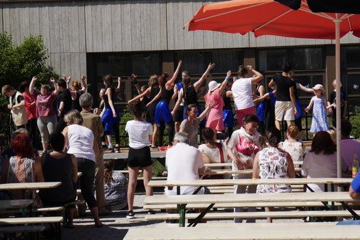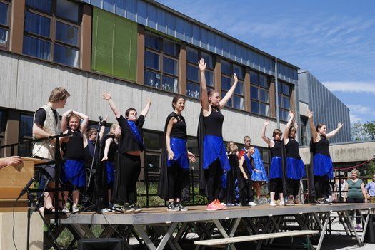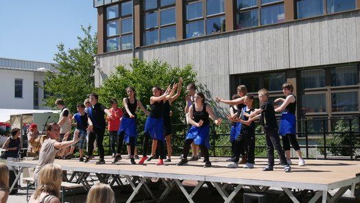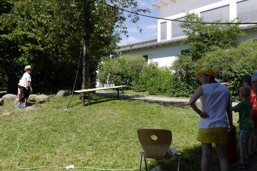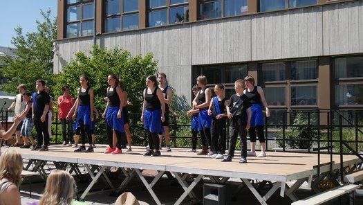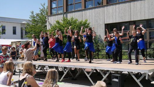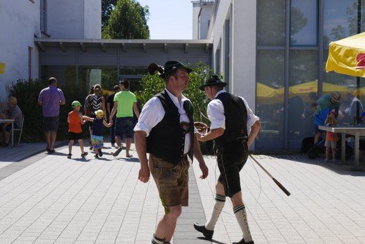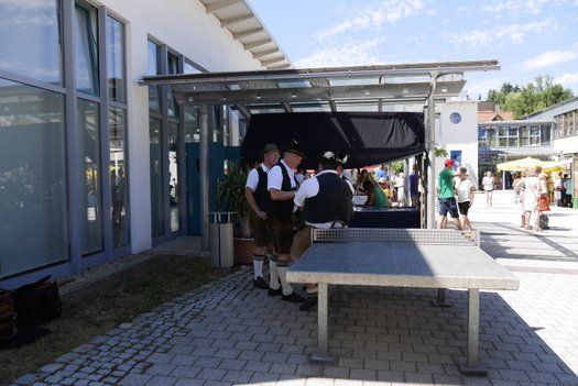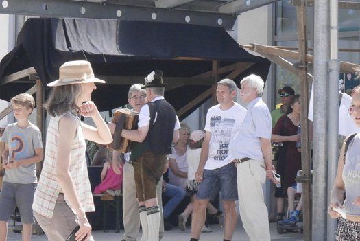 Wo sind die Schattenplätze, ob vor der Bühne, im Freizeitbereich oder im Garten, die Besucher waren die meiste Zeit von der gleissenden Sonne geflüchtet. Die Show auf der Bühne aber „must go on“, ob Bläserklasse oder Goaßlschnalzer, Tänzer, Sänger und Vorturner der Schultanzgruppe, alle schwitzen sich durch ihre Auftritte. Trotz- oder gerade wegen dieser schweißtreibenden Arbeit auf der sonnigen Bühne, wurde nicht mit Applaus gespart.