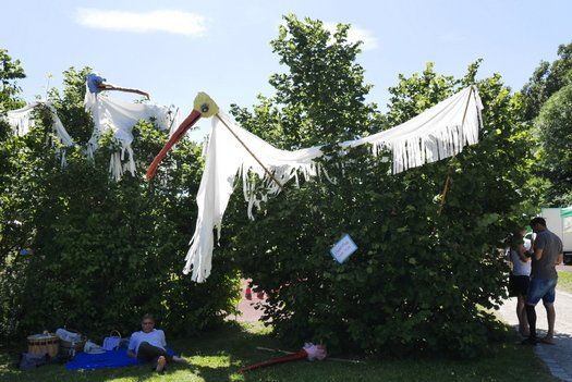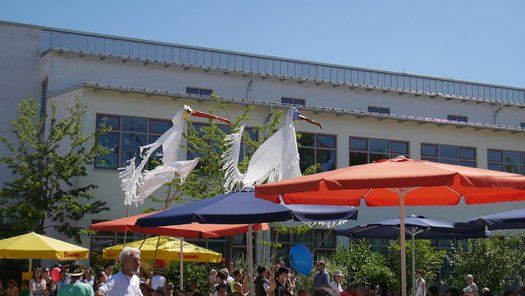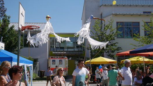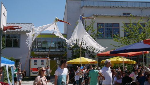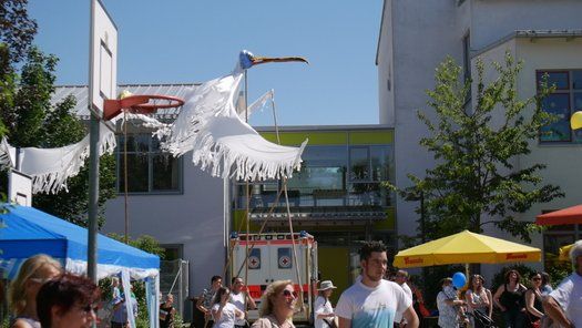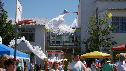 Das Percussion-Duo Double Drums, das unlängst in der Schule gastierte, war voll des Lobes über die großen und kleinen Jungtrommler. Riesige handgemachte Vögel auf Stecken geisterten über den Köpfen und pickten nach allzu neugieren Erwachsenen. Eltern und Kinder hatten ihren Spaß und die Bevölkerung hat sich trotz der Hitze einen ausgiebigen Besuch erlaubt. Wie gesagt die Innenräume waren gefragt, gerne wieder, aber bitte unter 30 Grad.