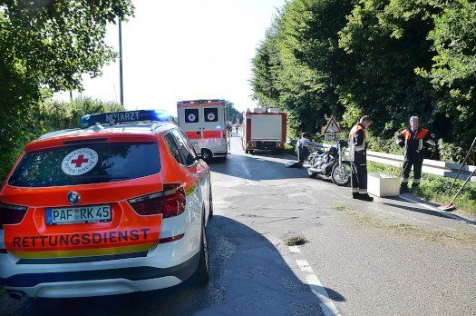 Mittelschwer verletzt hat sich am heutigen Abend kurz nach 18 Uhr ein Motorradfahrer kurz nach Fahlenbach. Die Staatsstraße 2049 war an der Unfallstelle kurzfristig vollständig für den Verkehr gesperrt.