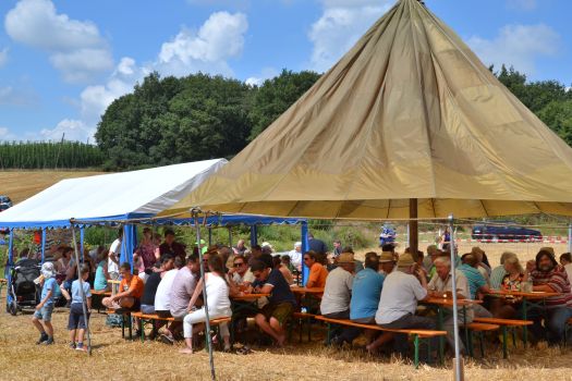 Der Nachmittag klang dann in gemütlicher Runde aus und die meisten Besucher und Traktorfahrer zogen sich unter den Sonnenschutz der Planen zurück und genossen das Stiagnhaus-Bier von "Kleinbraumeister" Helmut Schneider, der sich mit seinen Vorstandstandkollegen und Freunden der Agrar Oldies darum kümmerte, dass alles gut ablief. Den besten Draht hatte er natürlich zum Wettergott, denn ein Regen, wie am Abend zuvor gegen Schluss des Bulldog-Open-Air-Kinos, war nicht zu erwarten.