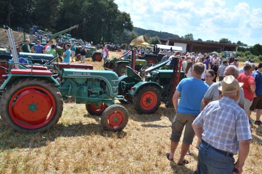 Bei heißen Sommertemperaturen dröhnten die Bulldogs bereits früh am Vormittag auf dem Acker von Anton Kiermeier (Kimmler-Hof Rohrbach), gleich hinter den letzten Gebäuden von Ottersried. Die Agrar Oldies Ottersried-Rohrbach hattene wieder zum Feldtag eingeladen und über siebzig Traktoren kamen, wobei die Fahrer häufig noch von anderen Personen oder Kindern auf dem Bulldog begleitet wurden.