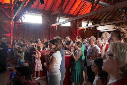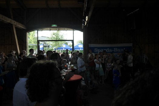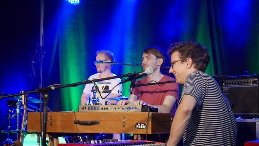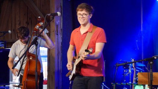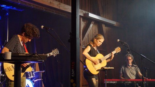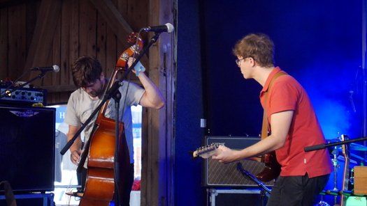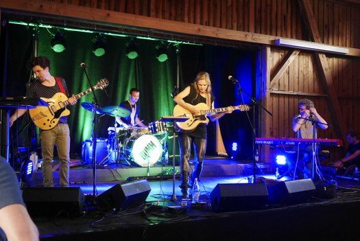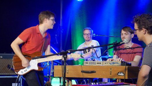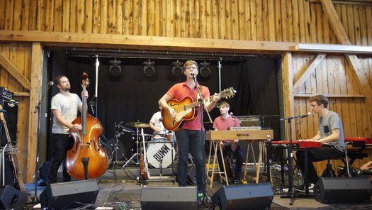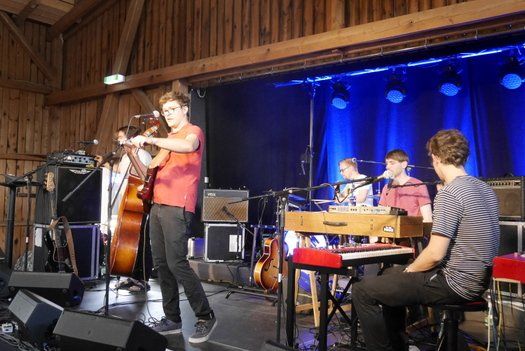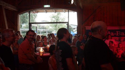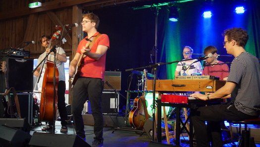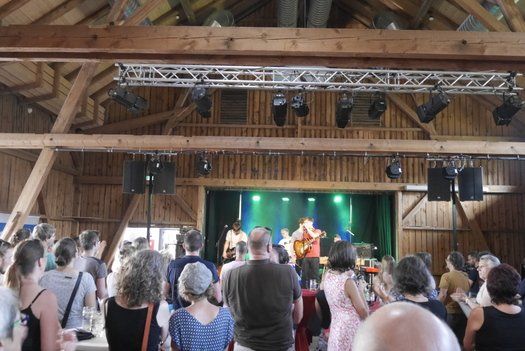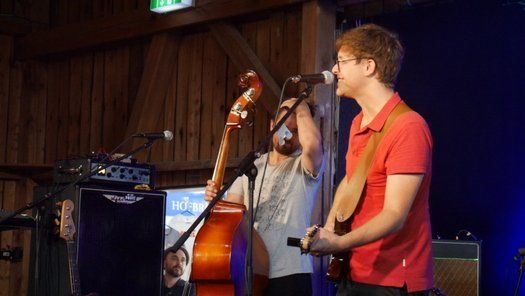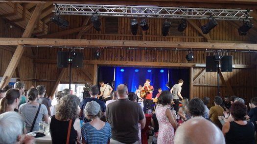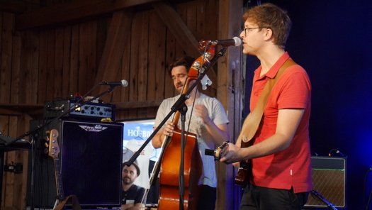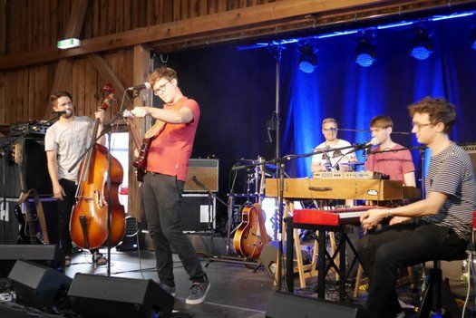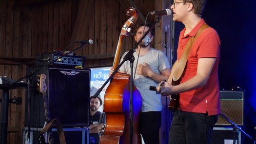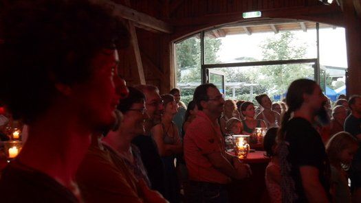 Mit der Münchner Band "Dobré" als Vorgruppe pendelte sich das Festivalfeeling bei den doch erstaunlich vielen Gästen für Sonntagabend langsam ein. Die fünfköpfige Band brachte mit ihrem vielseitigen Sound zwischen Indie, Folk, Rock 'n' Roll und Pop dass anfangs noch scheue Publikum langsam in Wallung. Die Ansprache und die Wahl der Mitmachtitel lockte dann auch die hartnäckigsten Biergartenhocker in den Saal. Bei den durchgehend selbstgeschriebenen Titeln war dann auch der eine oder andere Ohrwurm dabei. Die Arbeit als Vorgruppe haben sie jedenfalls, trotz technischer Schwierigkeiten, hervorragend erledigt.
