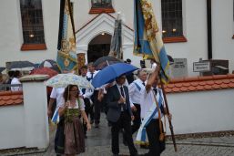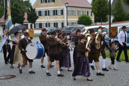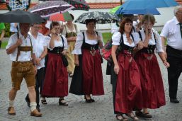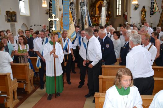 War es die Tage zuvor noch sommerlich schön mit Temperaturen bis zu 30 ° Grad, so hatte sich der Himmel schon am Sonntagmorgen bezogen und während der Festmesse in der Kirche St. Johannes Baptist fing es zu regnen an. Einzelne Besucher rannten während der des Festgottesdienstes schnell zum Auto, um einen Schirm zu holen, doch die meisten waren "oben ohne". Deshalb entschloss sich der Vereinsvorstand kurzfristig, den festlichen Teil nach dem Gottesdienst in der Kirche abzuhalten. Dazu spielte die Blaskapelle Pörnbach und Pater Pureiner ging noch einmal auf seine vorher gehaltene Messe ein und sagte passend zum Vereinsjubiläum: "Unseren eigenen Tod müssen wir sterben, mit dem Tod der anderen müssen wir leben". Zum Gedenken an die Toten senkten die anwesenden Fahnenträger der vielen Vereine ihre Fahnen.