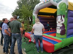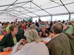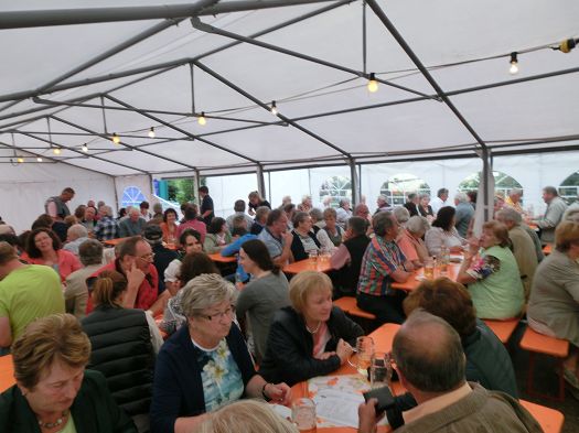 Jedes Jahr wird der Andrang größer, die gute Bewirtung und angenehme Stimmung hat sich weit herumgesprochen, so dass kaum ein Platz im Zelt frei war. Da machte auch ein kurzer Regenschauer nichts, bereits ab Nachmittag war bei einem Riesen Kuchenbuffet der Andrang groß. Die Kinder vergnügten sich auf der Hüpfburg, während die Erwachsenen die Zeit bis zum Abendessen verratschten. Steckerlfisch, Grillfleisch, Brotzeit - für jeden Geschmack war etwas geboten. Die Mitglieder und Angehörigen der Freiwilligen Feuerwehr Grünberg hatten wieder alles bestens vorbereitet, so dass das Dorffest auch heuer wieder ein großer Erfolg wurde.