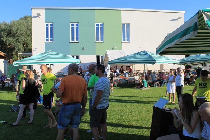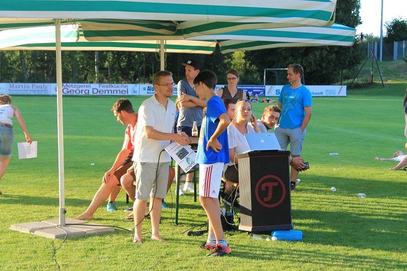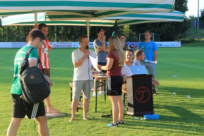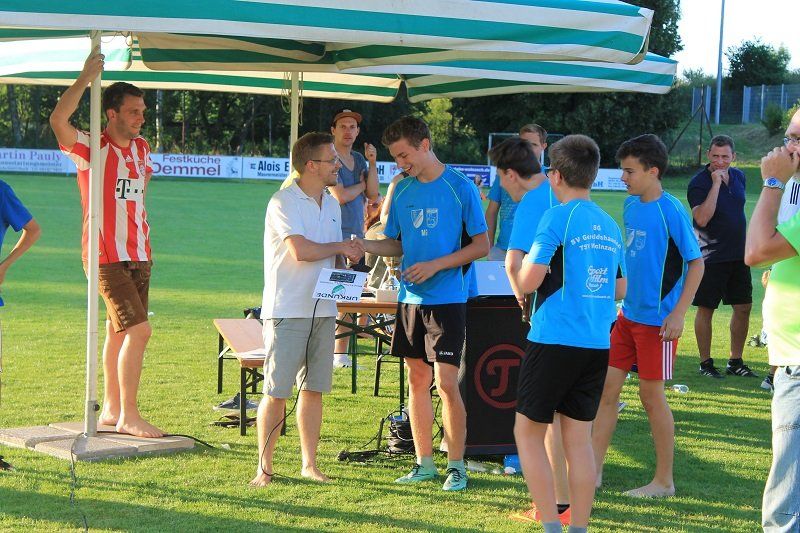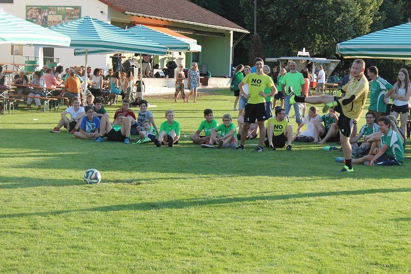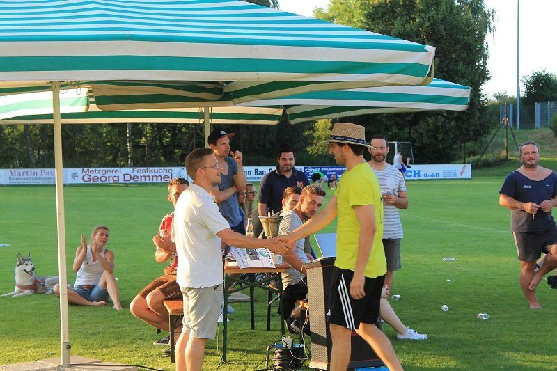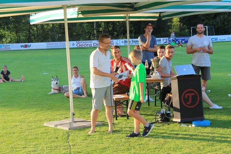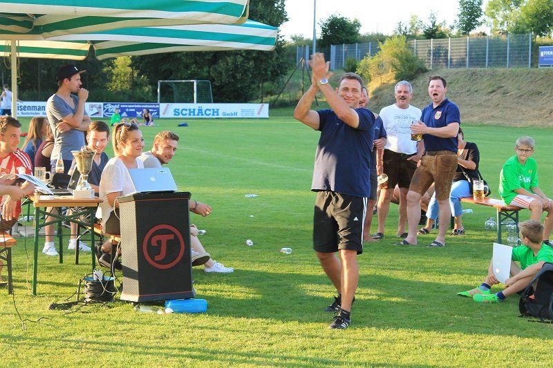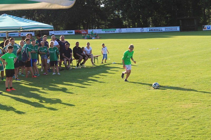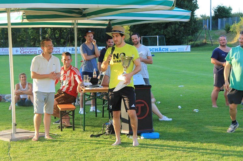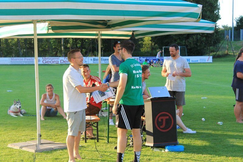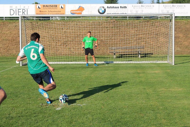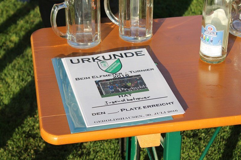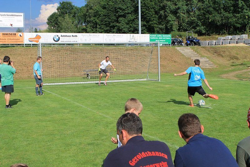 Beginn der Veranstaltung war Samstag um 17:00 Uhr. Ein großes Elfmeterturnier mit 16 Mannschaften aus allen verschiedensten Bereichen war geplant. Egal ob Fußballer, Feuerwehrmann, oder Koch, jeder konnte mit schießen. Unter den vielen Torjägern fand man auch einige Verantwortliche des SV Geroldshausen. So kickten zum Beispiel der 2. Jugendleiter Thomas Fischer und der Abteilungsleiter Fußball, Florian Drexler bei diesem „Gauditurnier“ mit. Die Teams wurden in vier Gruppen aufgeteilt, aus denen nur die jeweils Erst- und Zweitplazierten weiter kamen. Diese wiederum spielten in Viertel- und Halbfinale die Finalisten aus. Nach mehreren spannenden finalen Elfmetern konnte letztendlich die Mannschaft „No Waldz“ den Sieg einfahren und bekam sowohl eine Urkunde als auch den Wanderpokal überreicht, den es im nächsten Jahr zu verteidigen gilt.