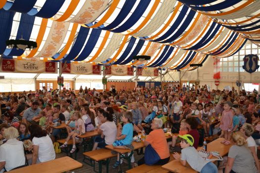 Bürgermeister Michael Franken begrüßte Erwachsene und Kinder im Festzelt und dankte Waltraud Schembera für die gelungene Organisation. Und dann ging es natürlich los mitt dem Theater: Die Ansage machte wie üblich der Kasper, der den Kindern kurz erklärte, wie der Nachmittag ablaufen würde. Und bei seiner üblichen Frage "Seid ihr denn alle da?" kam aus hunderten Kinderkehlen ein schallendes "JA". Und dann natürlich das Stück mit Pippi Langstrumpf, das die Kinder begeisterte. Da mussten sie nicht extra aufgefordert werden, zu rufen. Es reichte schon wenn der etwas troddelige Polizist etwas nicht gleich merkte oder ein Räuber von sich behauptete, dass er der Schönste und Intelligenteste sei, die Kinder reagierten sofort. Da war nichts einstudiert, das kam alles spontan von den Kleinen und es ist deshalb immer wieder erstaunlich, wie die Kinder bei einem Theaterstück in diese Welt der Bühne eintauchen und ihre Emotionen raus lassen.