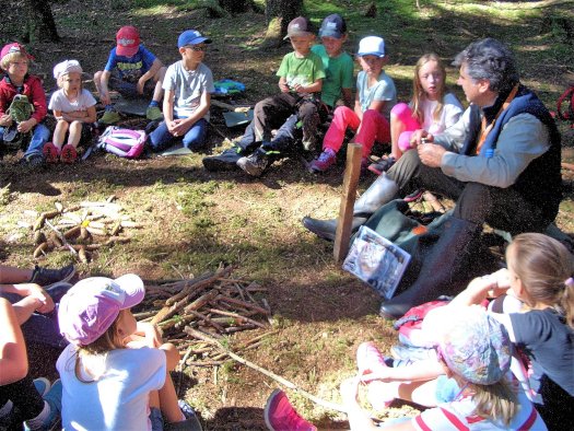 Spielerisch erfuhren die Kinder von der Naturpädagogin Ulrike Kainz und dem Wildnispädagogen Alfred Raths, welche Ausstattung der Lebensraum einer Wildkatze benötigt. Aber auch zu ihrem Nahrungsverhalten gab es mehrere Aktivitäten: „Die wilde Katz“ oder das „Katz-und-Maus-Spiel“ luden zum Toben, forderten aber auch die Geschicklichkeit. In ihrem Gepäck hatten die beiden BN-Spezialisten unter anderem einen Lockstock, der mit einere ebenfalls mitgebrachtem Baldriantinktur besprüht wird, um die Tiere sozusagen anzuködern.