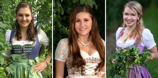 Sabrina Schmalhofer aus Obersüßbach, Eva-Maria Eisenmann aus Ampertshausen und Kathrin Obermeier aus Sallingberg bewerben sich um den Hopfenthron.