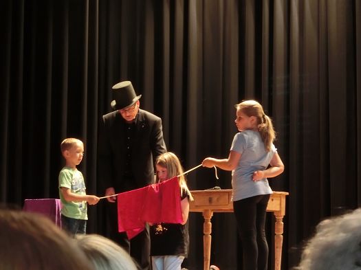Nach einer kurzen Pause waren dann die "Profis" des "Magischen Zirkels" an der Reihe, unter ihnen Jürgen March aus München, der mit ruhiger Stimme geheimnisvolle Geschichten mit überraschenden Zaubertricks verband, sehr verblüffend, trotz ihrer Einfachheit, die Leute zum Staunen brachte. Oder Sebastian Wurmdobler, der schon öfters in Au aufgetreten war und sich vor allem den Kindern zuwandte, die begeistert mitmachten. Rosi Ernst- Mayer mit Partnerin zeigte geheimnisvolle Kunststücke mit großen Ringen, die sich unsichtbar verketten aber auch wieder lösen ließen.