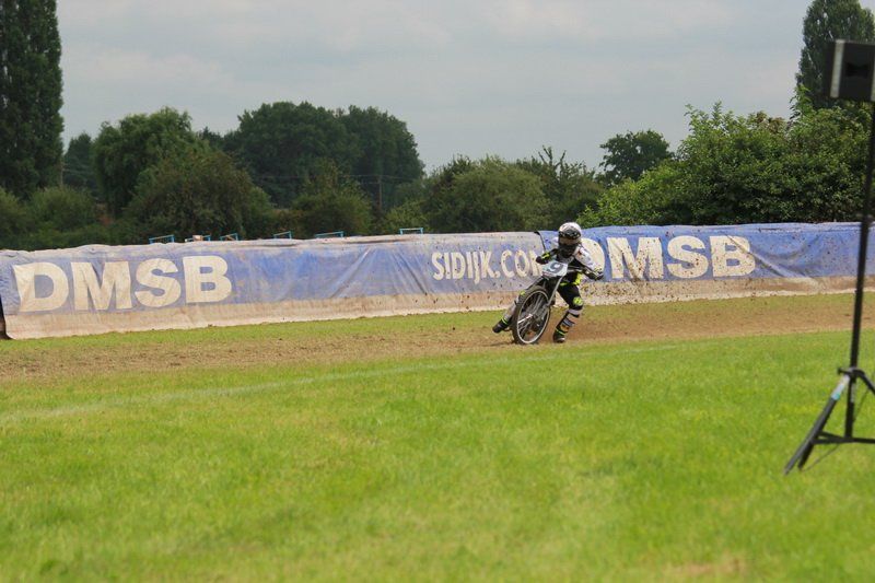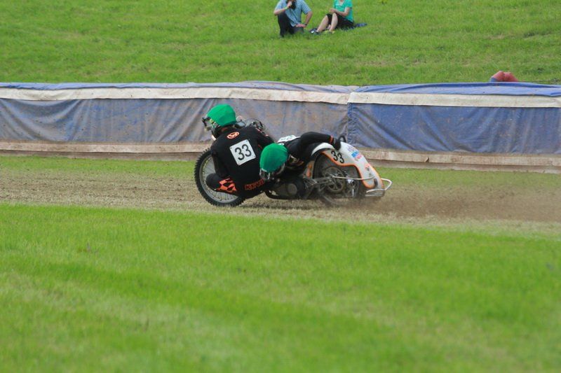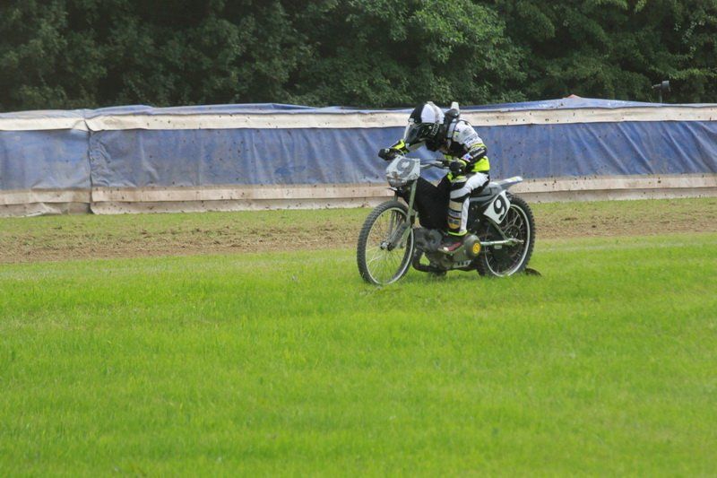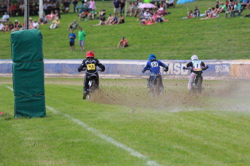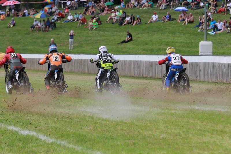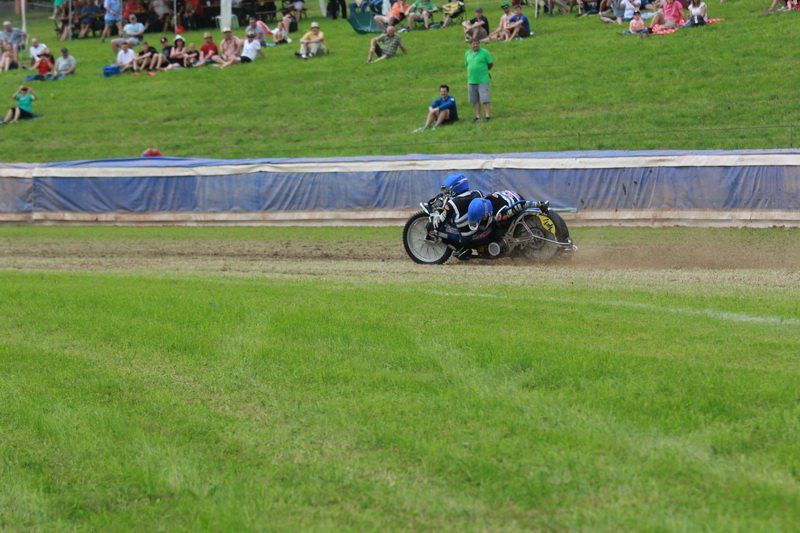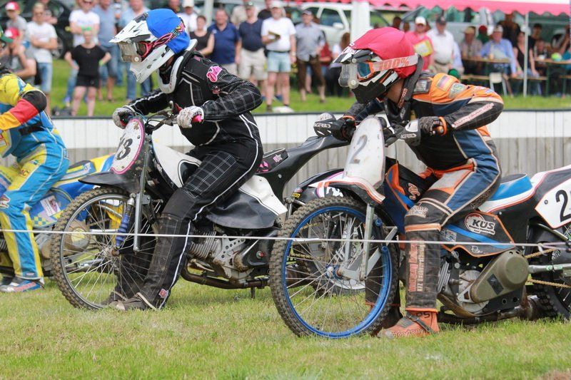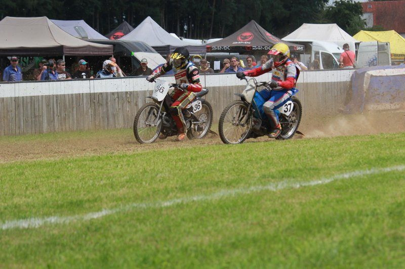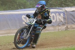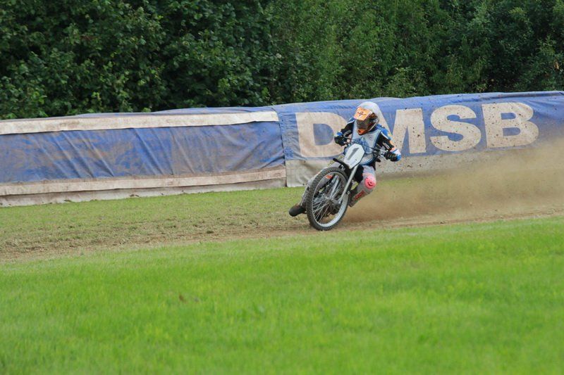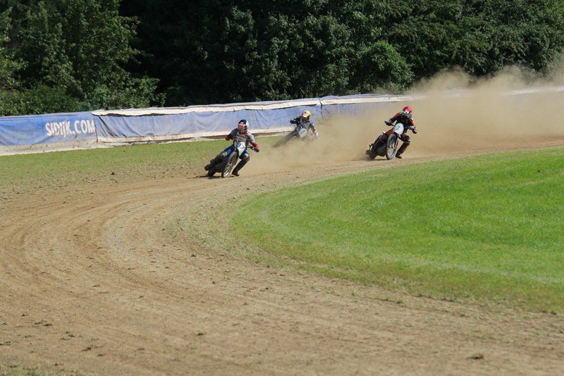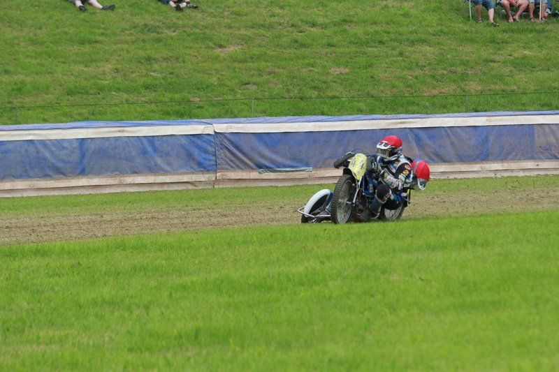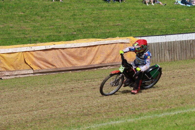 Pünktlich um 13.30 Uhr war es dann auch so weit und die ersten Fahrer begaben sich auf die Strecke. Vier Runden galt es zu absolvieren und nach Möglichkeit dann auch als erster über die Ziellinie zu rasen. Philipp Schmuttermayr zeigte in den Vorläufen, was den Bahnsport ausmacht. Mit einigen gewagten Überholmanövern setzte er mit insgesamt drei Siegen nach sechs Läufen ein deutliches Zeichen. Insgesamt 15 Punkte hatte Schmuttermayr so gesammelt und lag damit an der Spitze. Tim Brinkmann und Dennis Helfer lagen mit je 13 Punkten nach dem Vorläufen auf Platz zwei, dicht gefolgt von Fabian Wachs mit 11 Punkten.