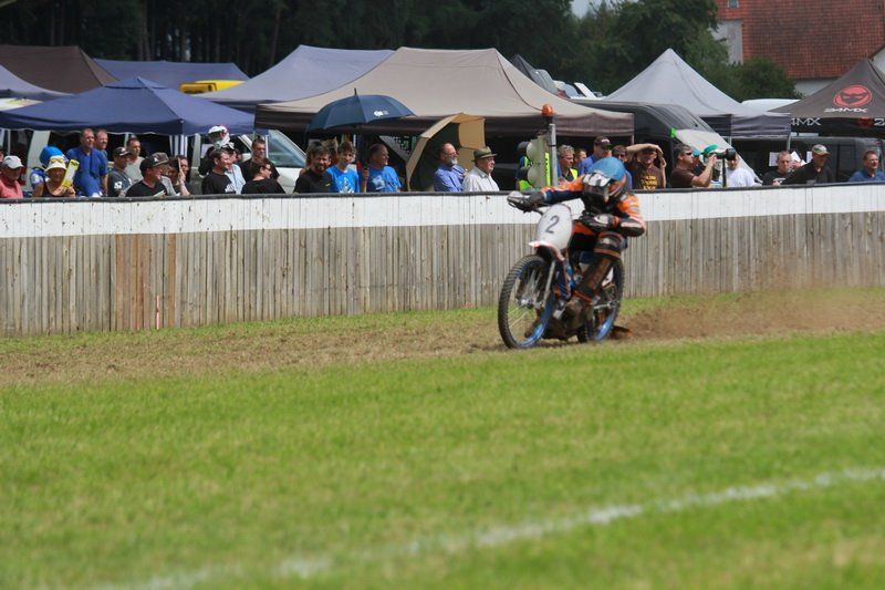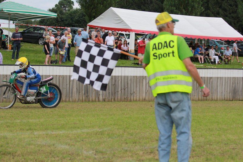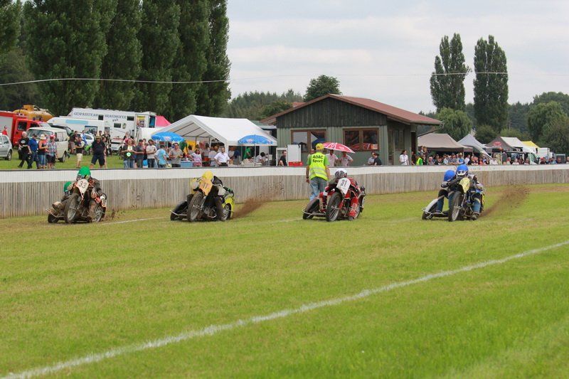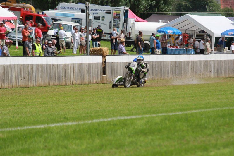 „Es ist die schönste Bahn in ganz Europa“ schwärmte Adolf Demmel und er hatte recht, denn bei strahlendem Sonnenschein zog es viele Motorsportfans nach Nandlstadt, schließlich sind die Grasbahnrennen dort schon legendär. Zuletzt jedoch konnten Zuschauer meist nur die Quads bestaunen, die über die 560 Meter lange Strecke heizten. „Das letzte Motorradrennen haben wir 2011 ausgerichtet“, so Demmel weiter. Schlechtes Wetter und vor allem auch gestiegenen Anforderungen an die Sicherheit machen es den Veranstaltern nicht immer leicht die Rennen durchzuführen.