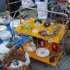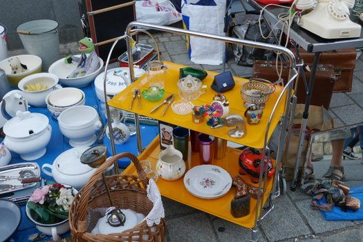 Ja Spurensuche und Eintauchen in die eigene Vergangenheit gehören zu jedem Flohmarktbesuch, es ist der ideelle Wert der vielen Sachen, zwar zu ihrer Zeit auch schon Massenprodukte, doch der Gebrauch reduziert bekanntlich die verfügbare Stückzahl. Das erhöht den materiellen Wert, den der Verkäufer eindringlich erwähnt, um dann beim Preis doch noch großzügig zu sein.