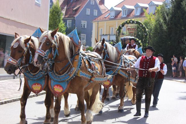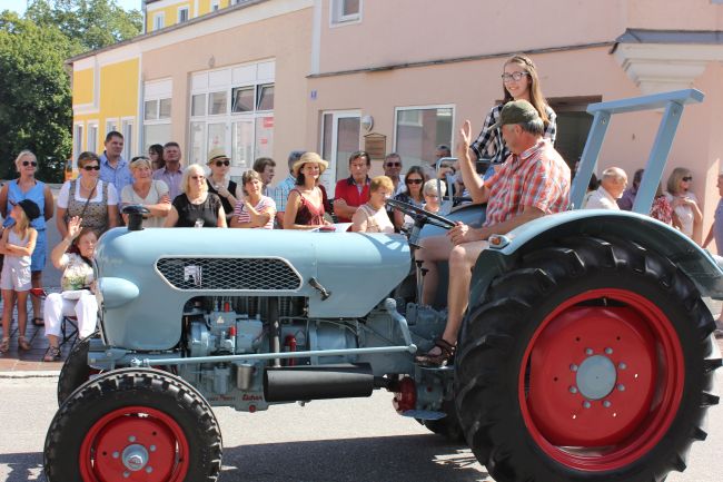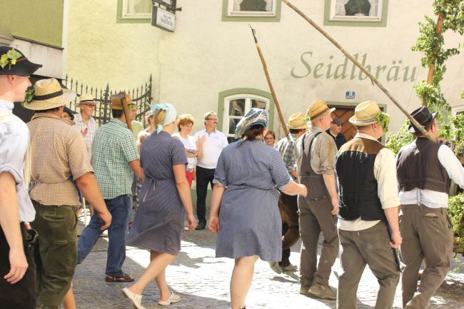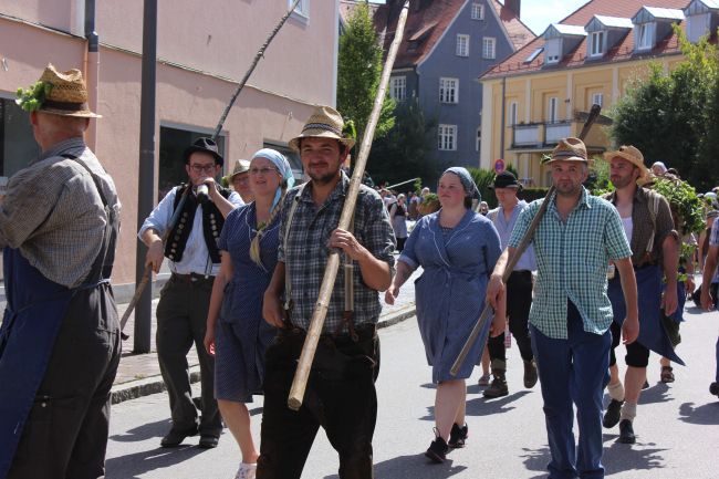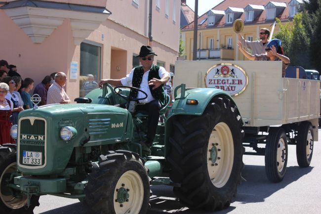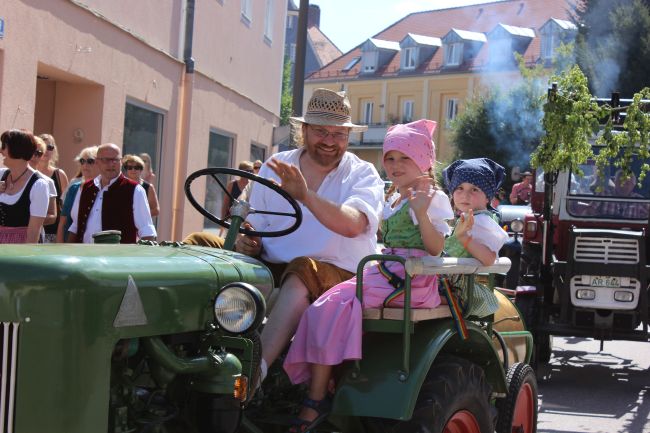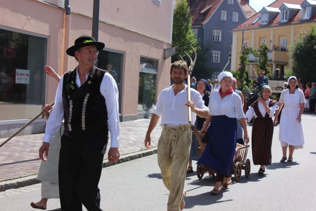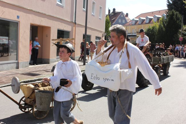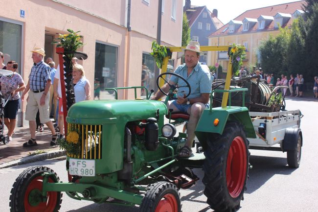 Trachtler und Schäffler, deren Aufgabe damals die Herstellung von Tonnen und Fässern war, durften selbstverständlich nicht fehlen. Komplettiert wurde das Defilee durch hämmernde Oldtimer Traktoren, Pferdegespanne und prächtige Brauereiwägen. Da hieß es einfach nur: Schauen und Staunen.