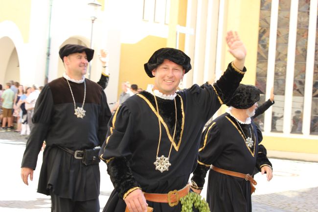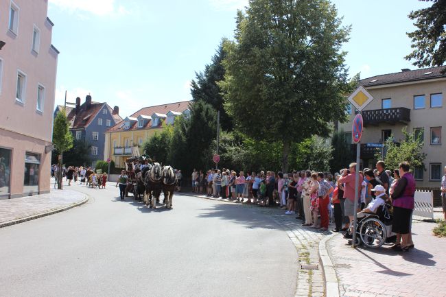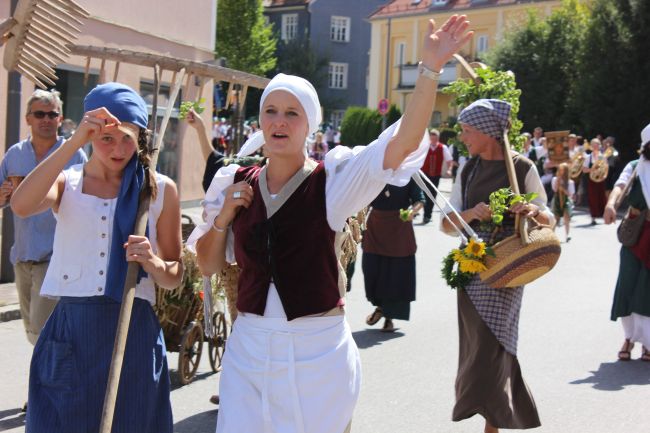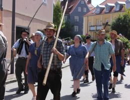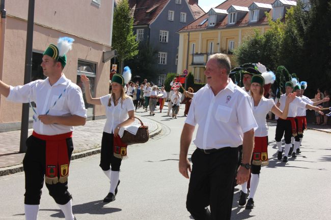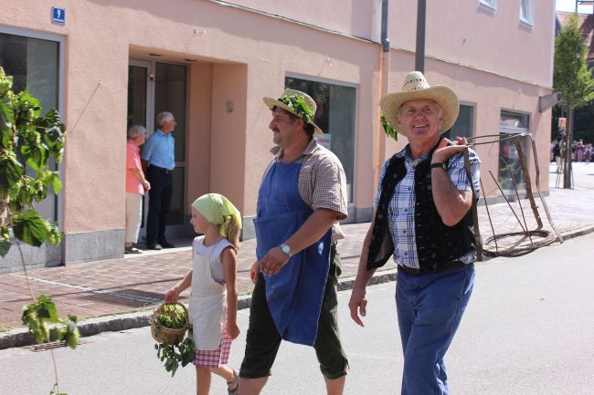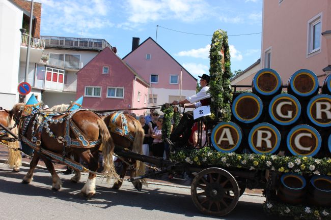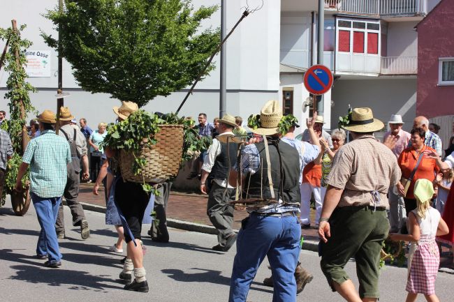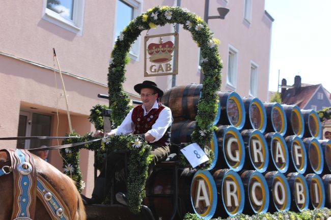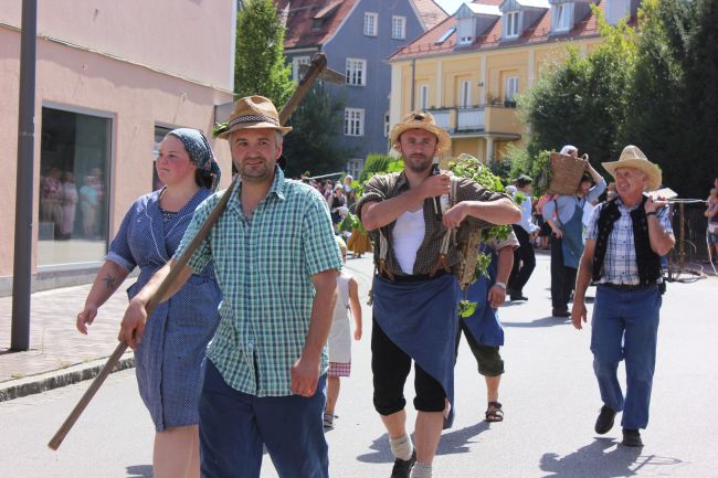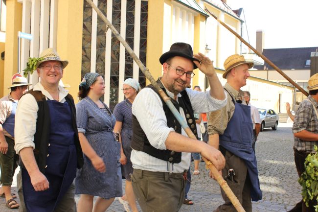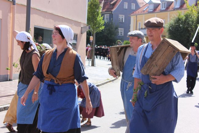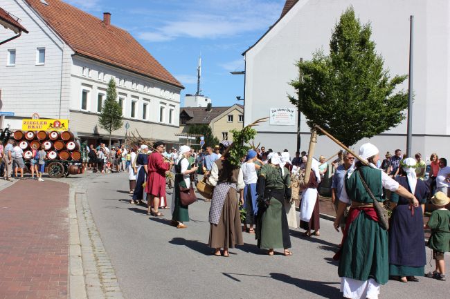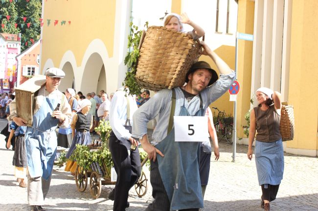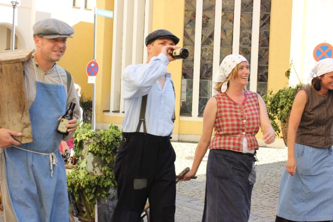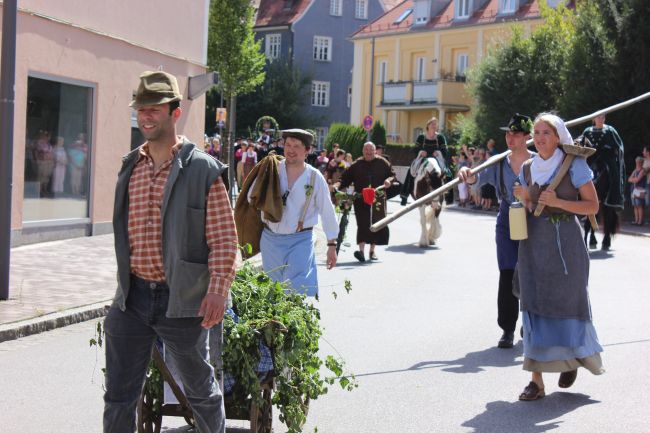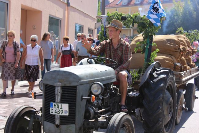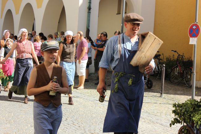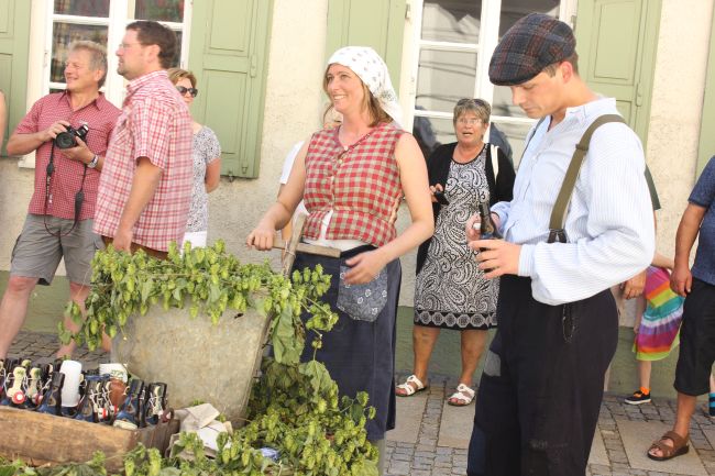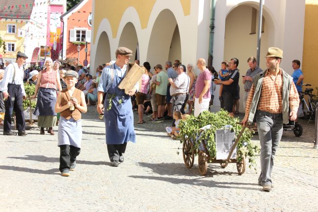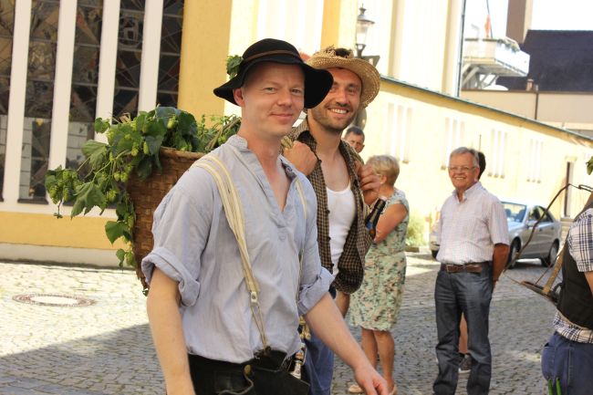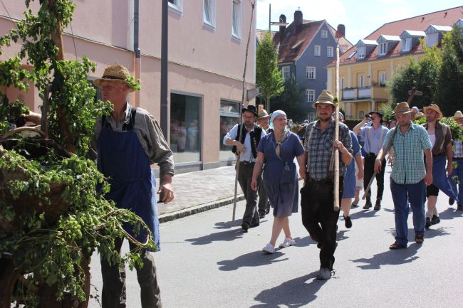Mehrere Hundert Darsteller aus Vereinen, Privatpersonen und Vertretern aus der Politik erzählten im historischen Umzug nicht nur einen Teil der Stadtgeschichte, sie thematisierten daneben historische Berufsbilder sowie alles rund um Hopfen & Bier. Hopfenzupfer wie zu Großmutters Zeiten mit Kirm und Stange gab es einige zu sehen.